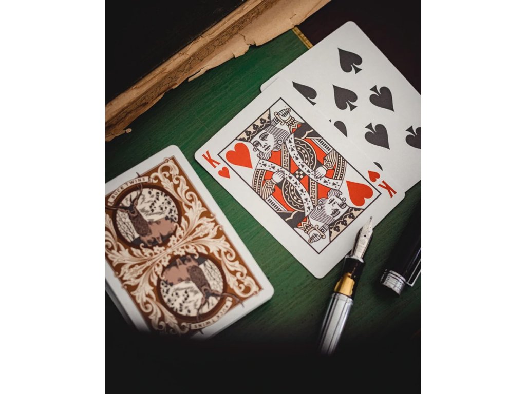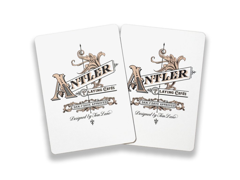 Tyto nové edice karet Antler vytiskla United States Playing Card Company na crushed stock.