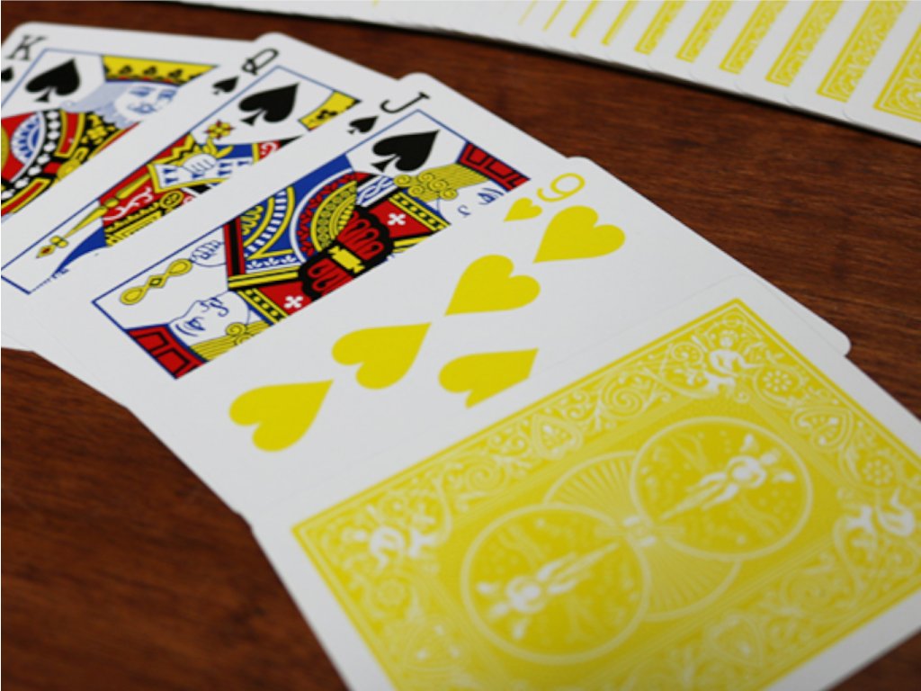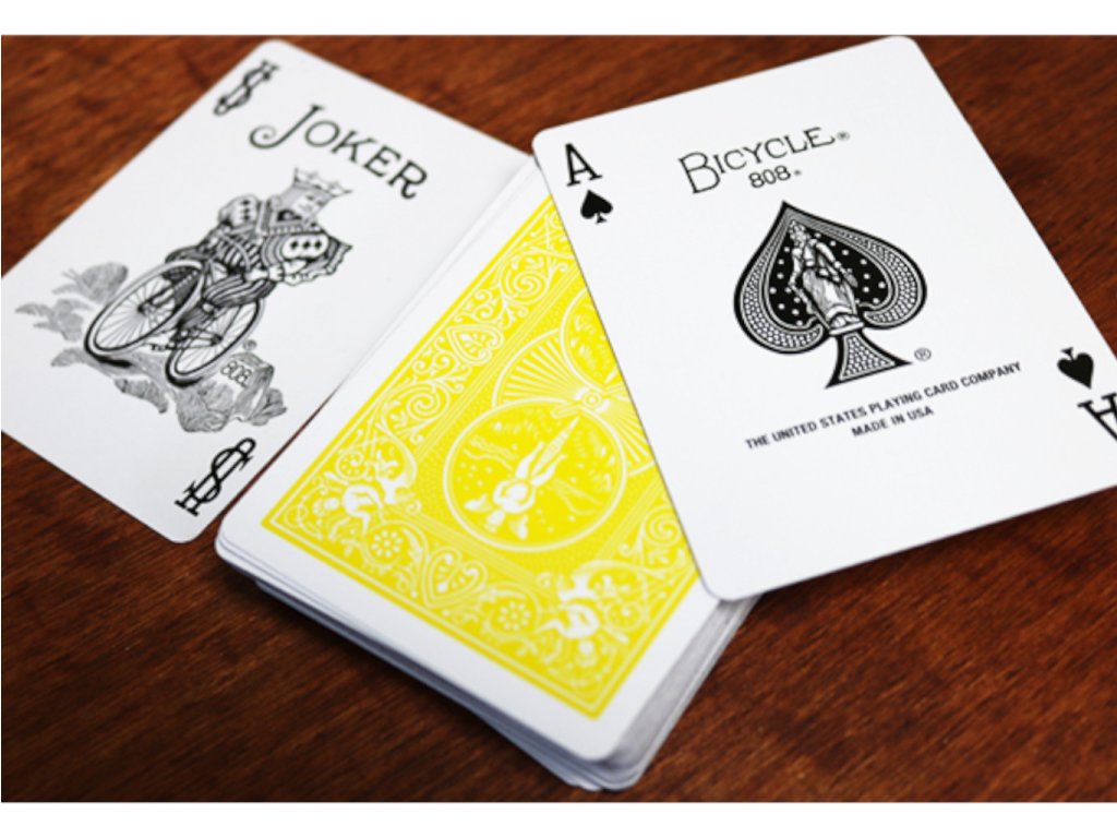 Karty Bicycle Rider Back patří k nejpoužívanějším kartám na světě. Jsou dostupné v mnoha barevných variacích, včetně této zářivé žluté.