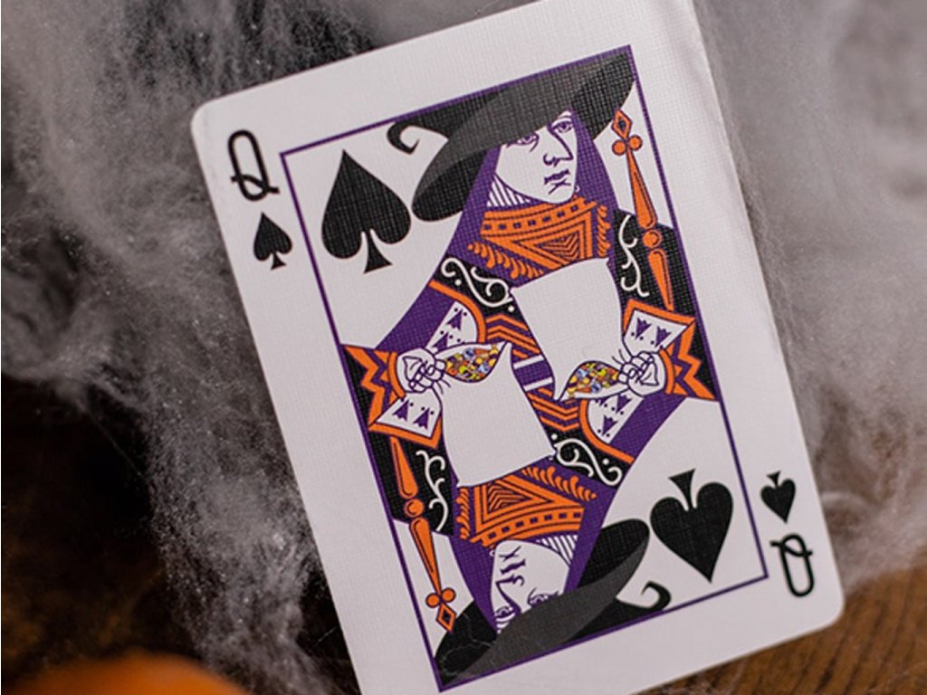 Na černém pozadí rubu vynikají již zmíněné oranžové dýně. Halloweenskou tématiku ctí i figury. Králové jsou kostlivci, královny jsou čarodějnice a kluci mají místo hlavy, kterou si drží v náručí, vyřezanou dýni.