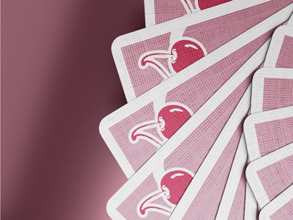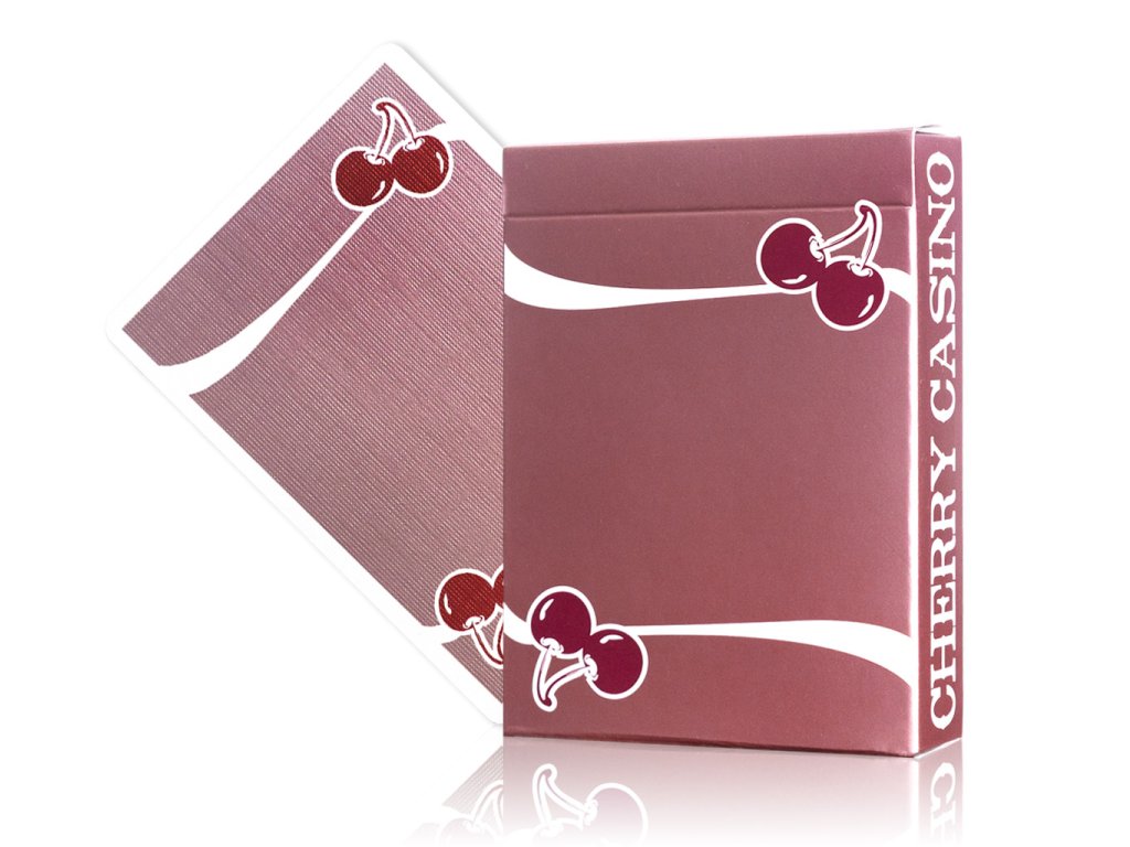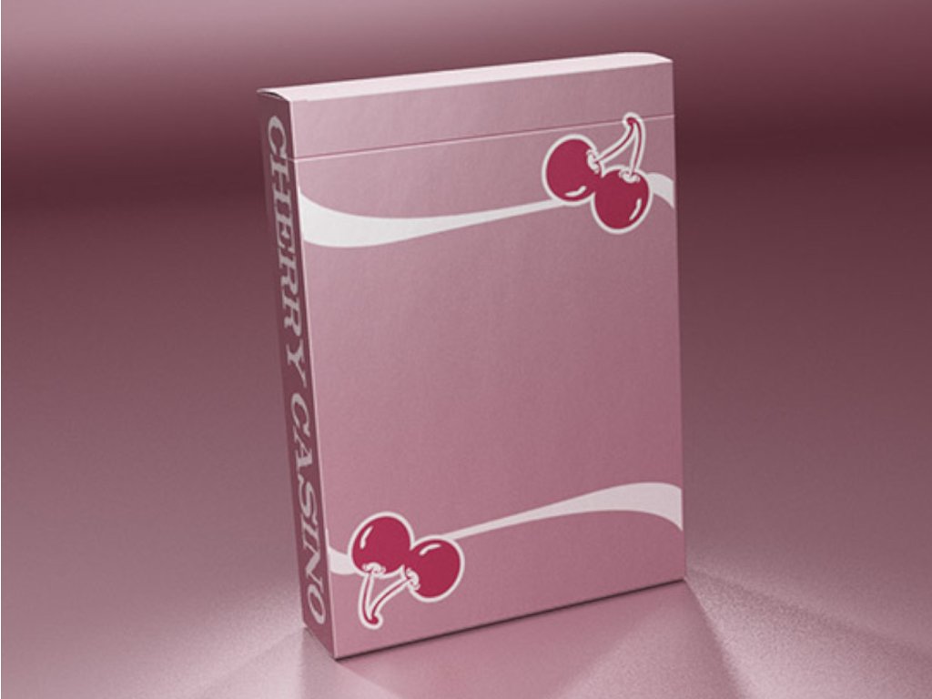 Další balíček ze série Cherry Casino Playing Cards přináší metalicky růžový rub. Ten dává vyniknout ikonickým rudým třešním.