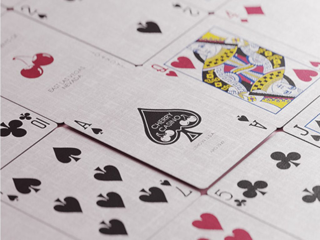 Karty Cherry Casino Flamingo Quartz Playing Cards vytiskla United States Playing Card Company na crushed Premium stock. Karty mají traditional cut.