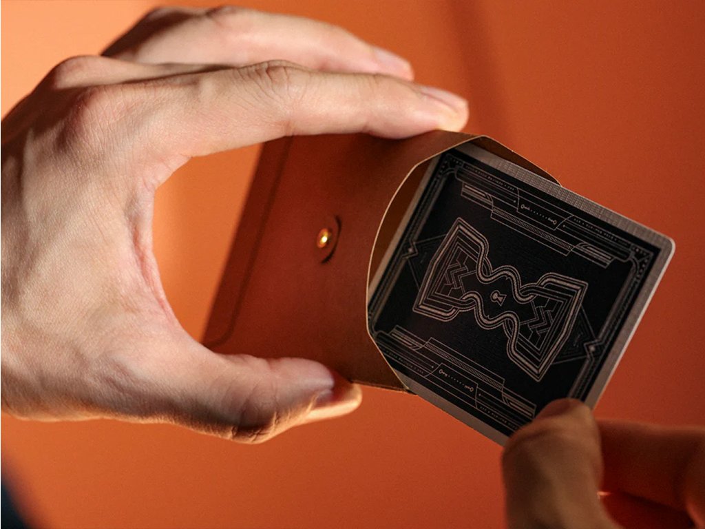 Balení obsahuje tři obálky Easylopes (hnědou, šedou a červenou), loader a dva hadříky pro kouzlo typu Nest of Wallets s vypůjčenou mincí. Loader vám do obálky pomůže hladce vložit složenou kartu, prsten nebo minci.
