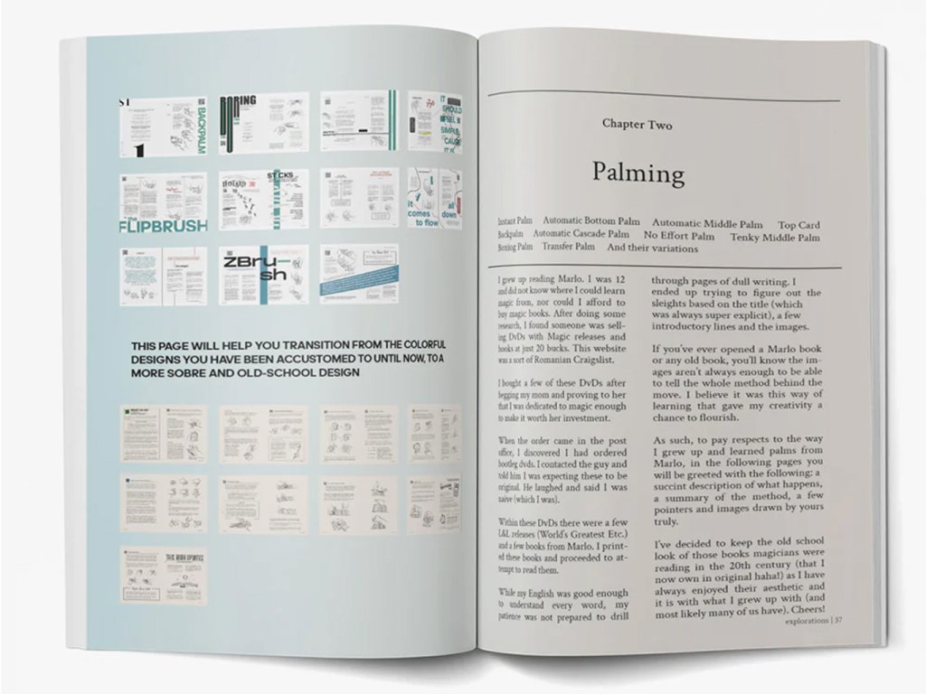 Explorations je plná Bizova originálního materiálu. Pokud jste viděli některé z jeho videí, víte, že je mistrem sleight of hand, který dokáže obtížné techniky předvádět s neskutečnou lehkostí.