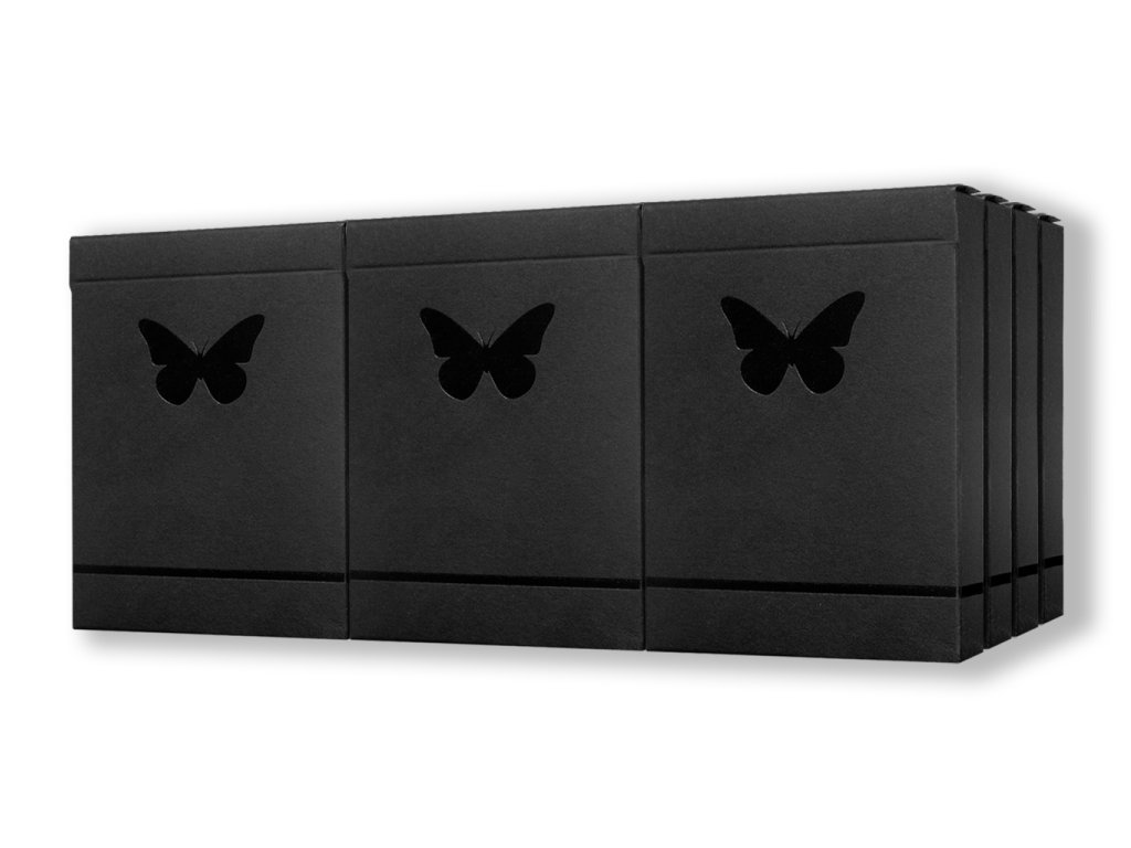 Futterfly mají, stejně jako černo-bílé karty Butterfly, černě potištěné hrany (edge print). Díky Cartamundi spolupracujeme s francouzskými specialisty, jejichž způsob potiskování hran nijak nesnižuje kvalitu karet, právě naopak. Karty jsou díky potištěným hranám odolnější vůči vlhkosti. Potištěné hrany také zvýrazňují vlastnosti karet určené pro kouzelníky.