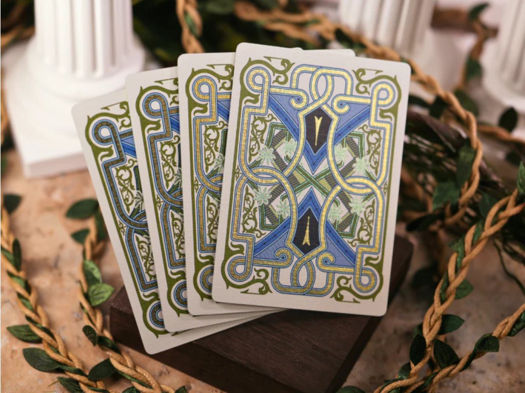 Číselné karty se vyznačují jemnými a složitými detaily, které zvyšují dimenzionalitu každé karty, s výraznými symboly, které na kartách vynikají díky netradičnímu umístění.