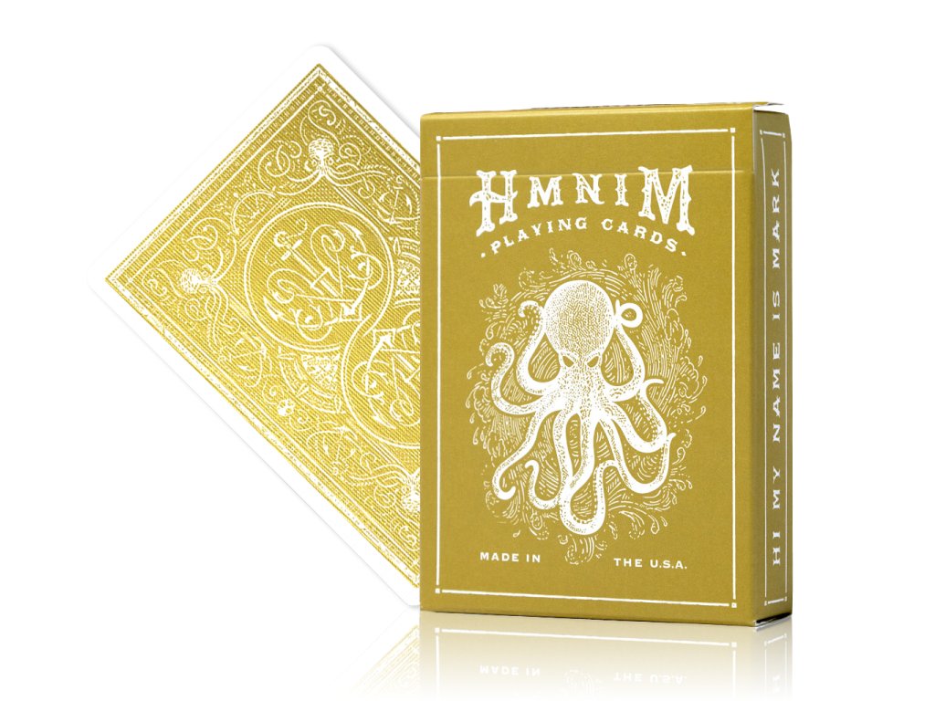 Karty Hi My Name Is Mark Gold vytiskla United States Playing Card Company na crushed Premium stock.