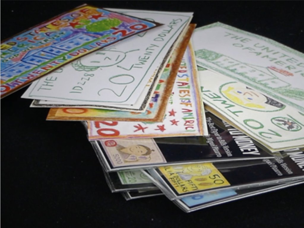 Tato „dětská“ verze nahrazuje novinové ústřižky bankovkami, které vypadají, jakoby je kreslily malé děti. Zde tak změníte „hrací“ peníze na skutečné!