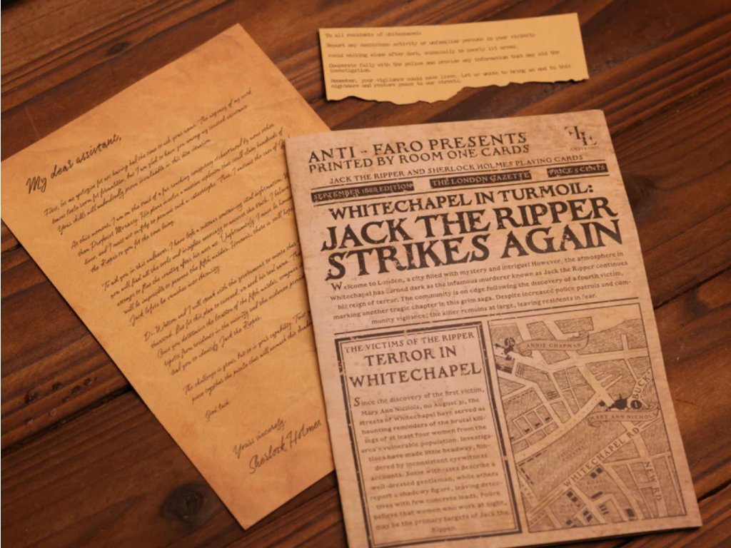 Vstupte do mlhou zahalených ulic viktoriánského Londýna, kde za každým rohem číhá tajemství a nebezpečí. Karty Jack the Ripper & Sherlock Holmes spojují skutečnost s fikcí a mísí reálný teror zločinů Rozparovače s mistrovskými deduktivními schopnostmi Sherlocka Holmese. Tento balíček karet není jen uměleckým dílem, ale také vzrušující hádankou, která hráče vyzývá, aby odhalili pravdu, než bude příliš pozdě.