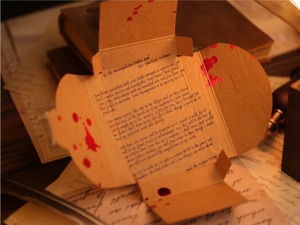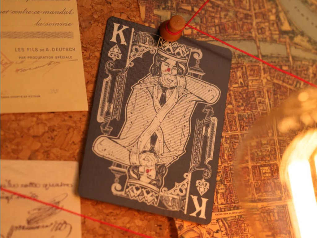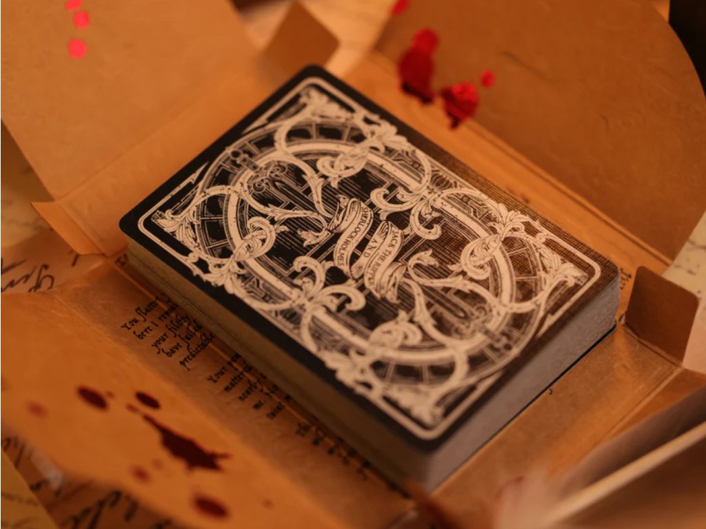 Tajemný zážitek, který se rozvíjí a je zapečetěn voskovým emblémem. Abyste se dostali ke kartám, musíte opatrně rozbalit krabičku a odhalit tak složitý design, který zachycuje podstatu napínavého pátrání detektiva.