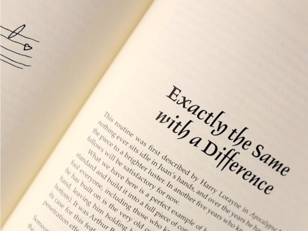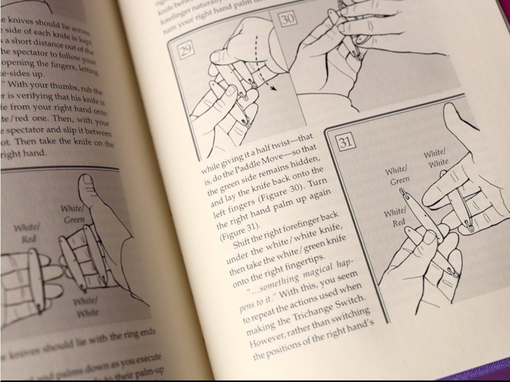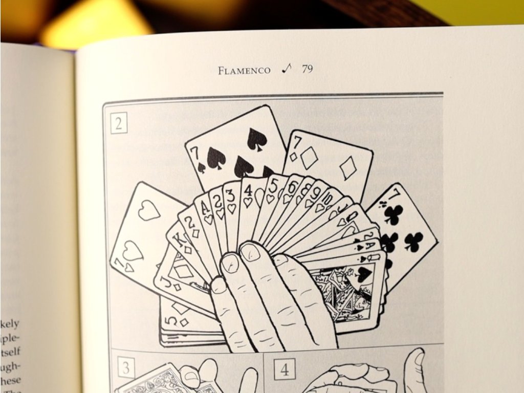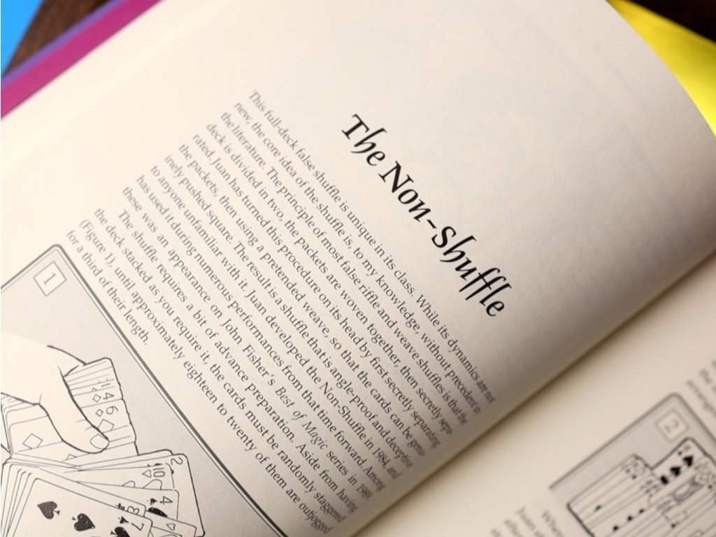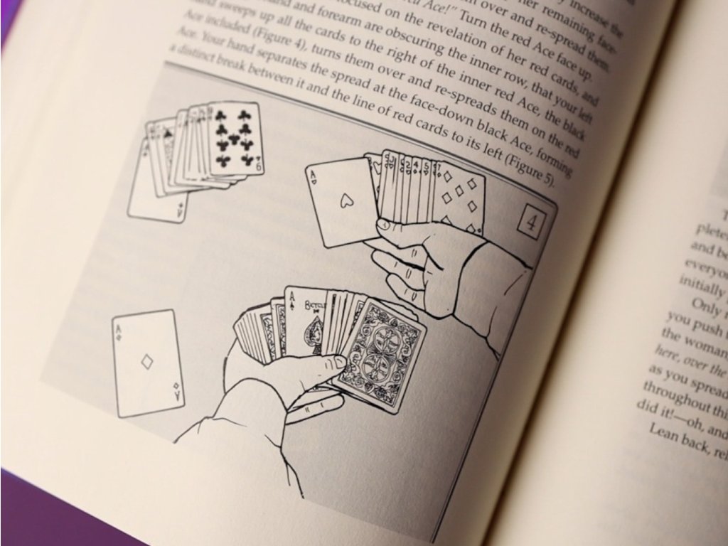 Kniha začíná palmáží a několika typy falešného míchání. Velkou část knihy pak tvoří karetní kouzla, jak pro mikromagii, tak parket a jeviště.