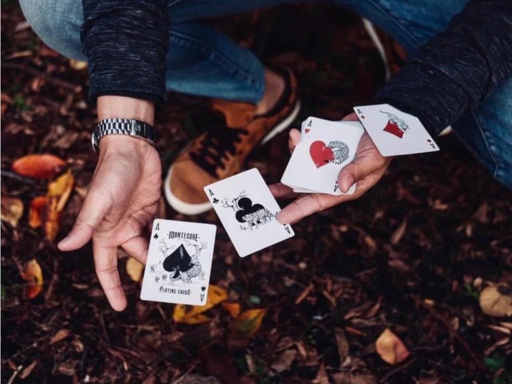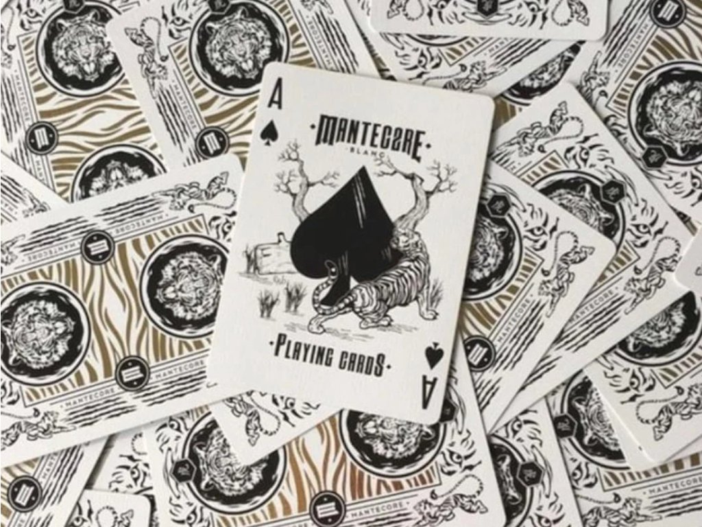 Karty Mantecore V2 Playing Cards vytiskla společnost Cartamundi na Superlux stock s využitím True Linen B9 Finish.