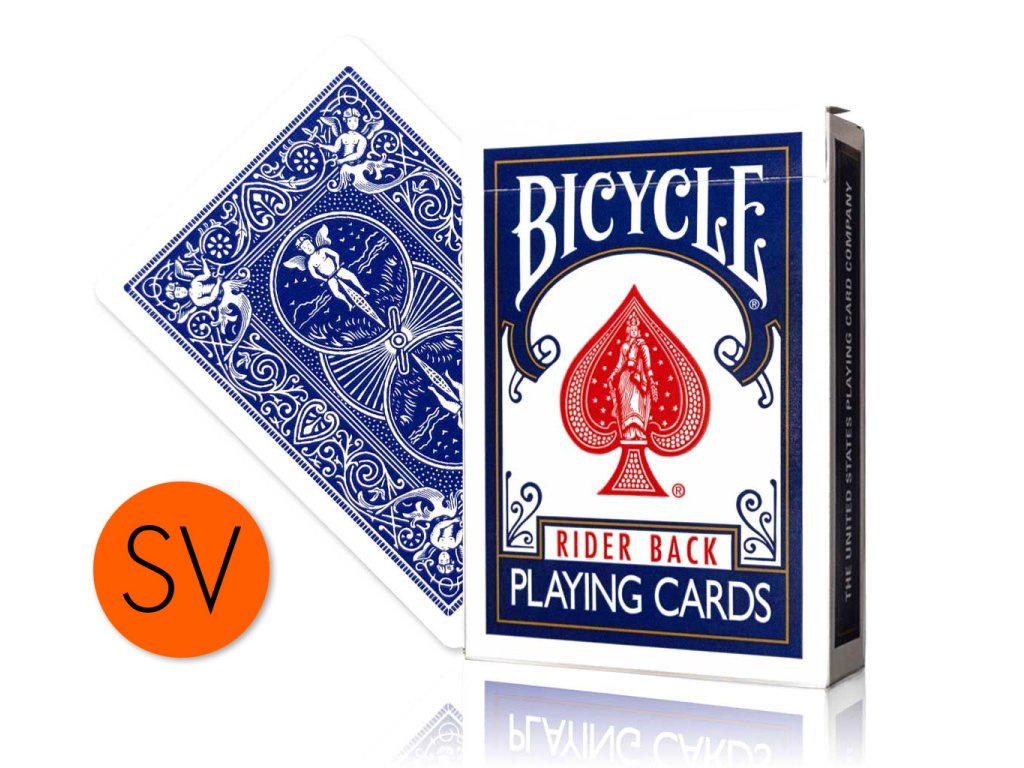 Ručně vyrobený modrý balíček Svengali ze značených karet Marked Bicycle Rider Back Playing Cards.