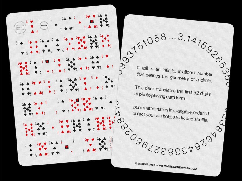 Karty Missing Pi Playing Cards byly vydány na světový den čísla pí. Je jich jen 314 a symbolizují prvních 52 číslic čísla pí.