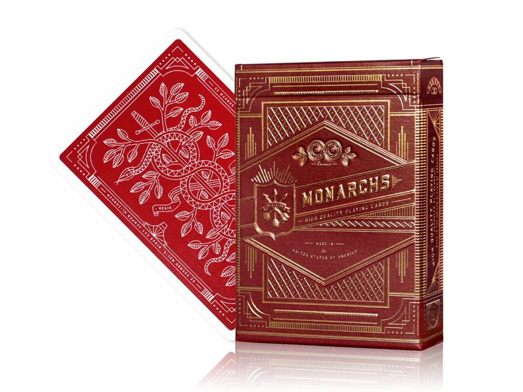 Díky elegantnímu a nadčasovému back designu si Monarchs oblíbily nejen cardisté, ale především kouzelníci. Ti si zároveň považují lehce upravené standardní USPCC líce, kterým použití tmavších barev dodalo nádech luxusu a královské výjimečnosti.