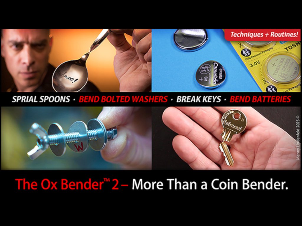 OX Bender je již několik let nepoužívanější pomůckou mezi kouzelníky pro ohýbání drobných předmětů, především mincí. Jeho druhá generace, OX Bender™ 2.0, ponechává vše dobré z první verze a přidává několik vylepšení.