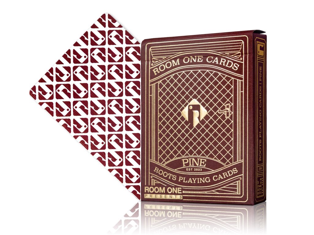 Elegantní karty Red Roots Playing Cards Pine Edition potěší milovníky silných, pevných a odolných karet. Jsou totiž vytištěné na 290gsm Afflux Stock.