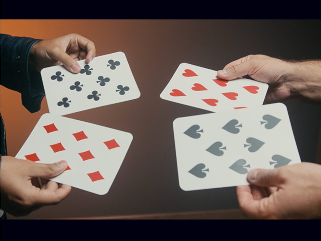 V tomto karetním kouzle ukážete divákům čtyři krále, které se v mžiku změní na čtyři osmičky.