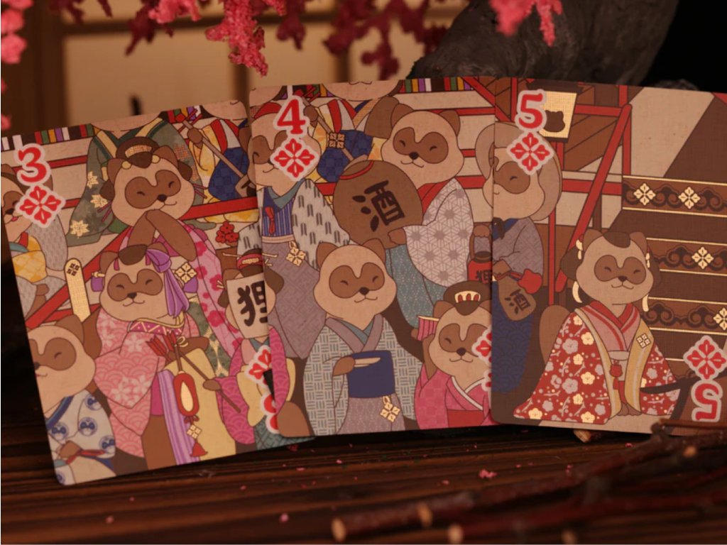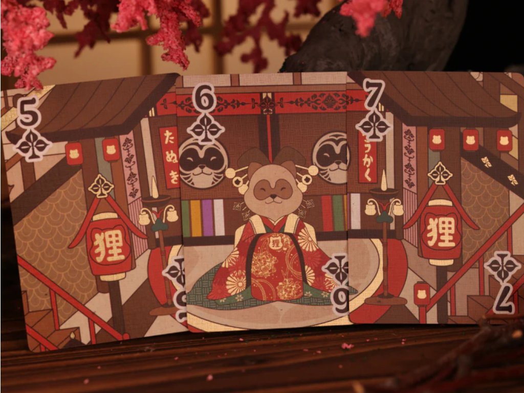 Číselné karty v edici Yukaku Tales jsou více než jen hrací karty – jsou součástí mimořádné skládačky. Seřaďte je ve správném pořadí a odhalte ohromující panoramatickou ilustraci živého Yukaku, doplněnou o obsazení jedinečných a fantaskních postav Tanuki.
