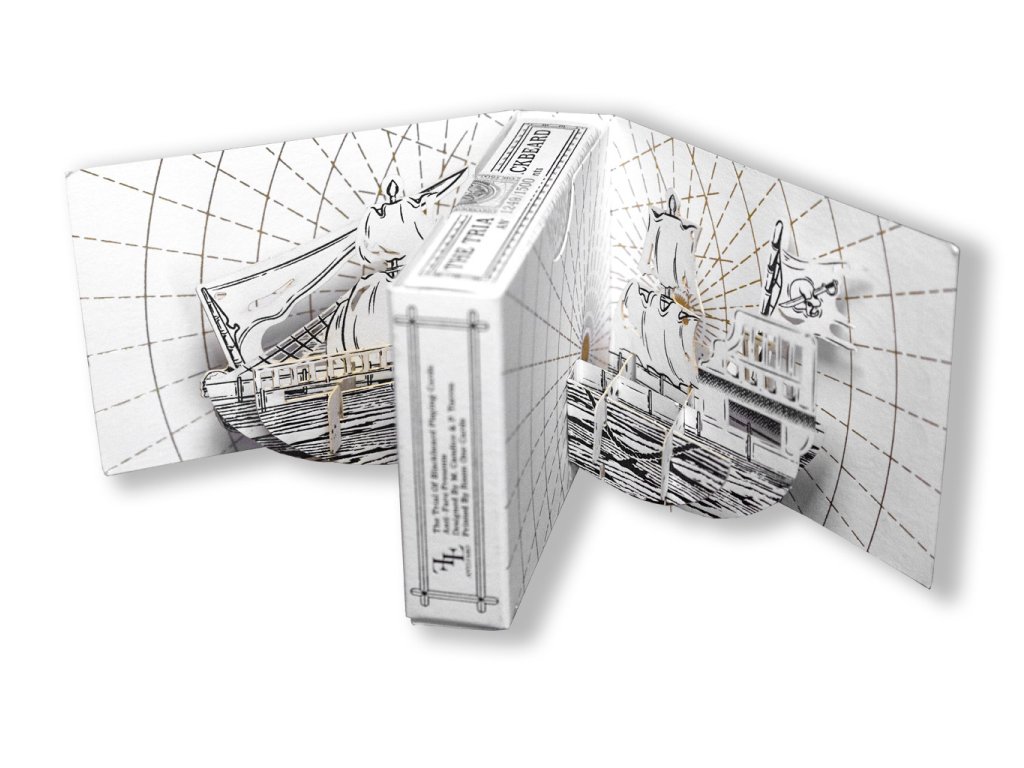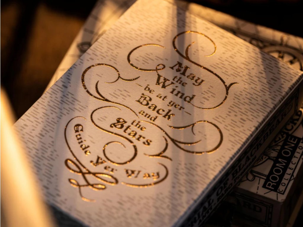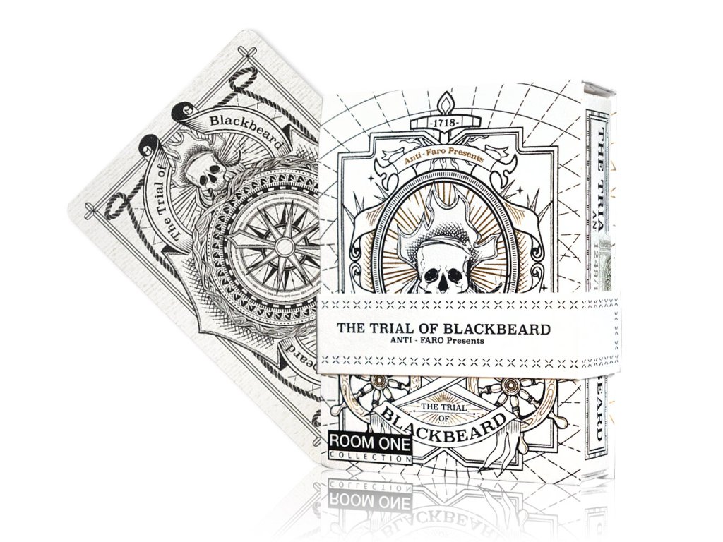 Speciální bílá edice karet Trial of Blackbeard Playing Cards od Room One.