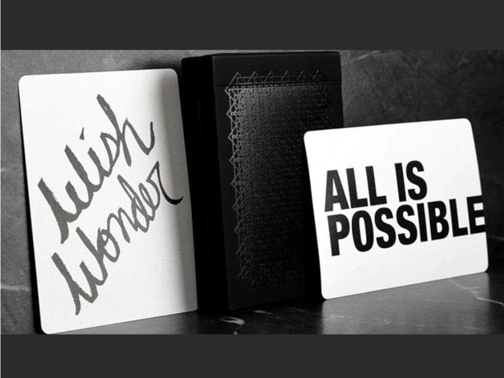 Prémiové hrací karty vyrobené ve spolupráci s naším dlouholetým přítelem a spolupracovníkem, Chadem Nelsonem. Navrhl Nicolaz Groll a vytiskla společnost The U.S. Playing Card Company na drceném papíře. Baleno v luxusní měkké černé krabičce, lisované tonální černou fólií. Wish Wonder Deck představuje nekonečnou síť možností a dva poetické manifesty k přemýšlení.